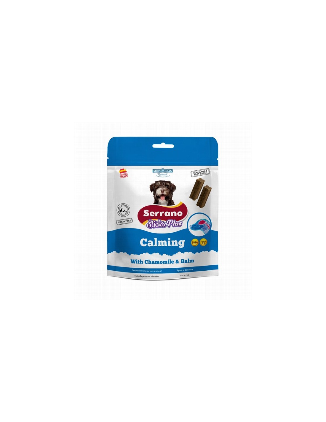 Carne 66.5% (45% jamón serrano, 21.5% carne de pavo), arroz, glicerina vegetal, 6% salmón y atún, guisantes, 1% extracto de manzanilla, 1% extracto de pasiflora, minerales, aceite de girasol. Aditivos: conservantes: ácido cítrico, formiato de calcio, ácido propionico. Aromatizantes: aceite de orégano y romero.