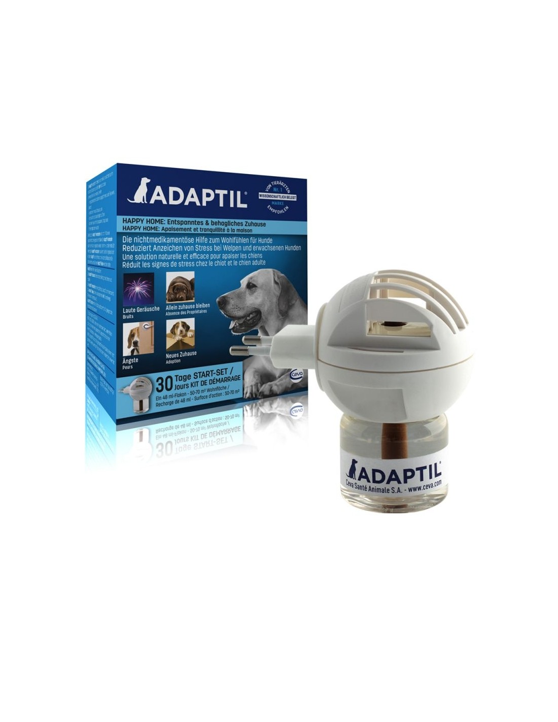 El difusor ADAPTIL con su copia de la feromona DAP ® tiene un efecto calmante en el perro en situaciones que producen estrés y le proporciona a tu mascota una sensación de seguridad. Esta sustancia inodora crea una atmósfera de bienestar y es ideal para las exposiciones, para acostumbrar al perro a estar con animales nuevos o si se deja al perro solo en casa.
