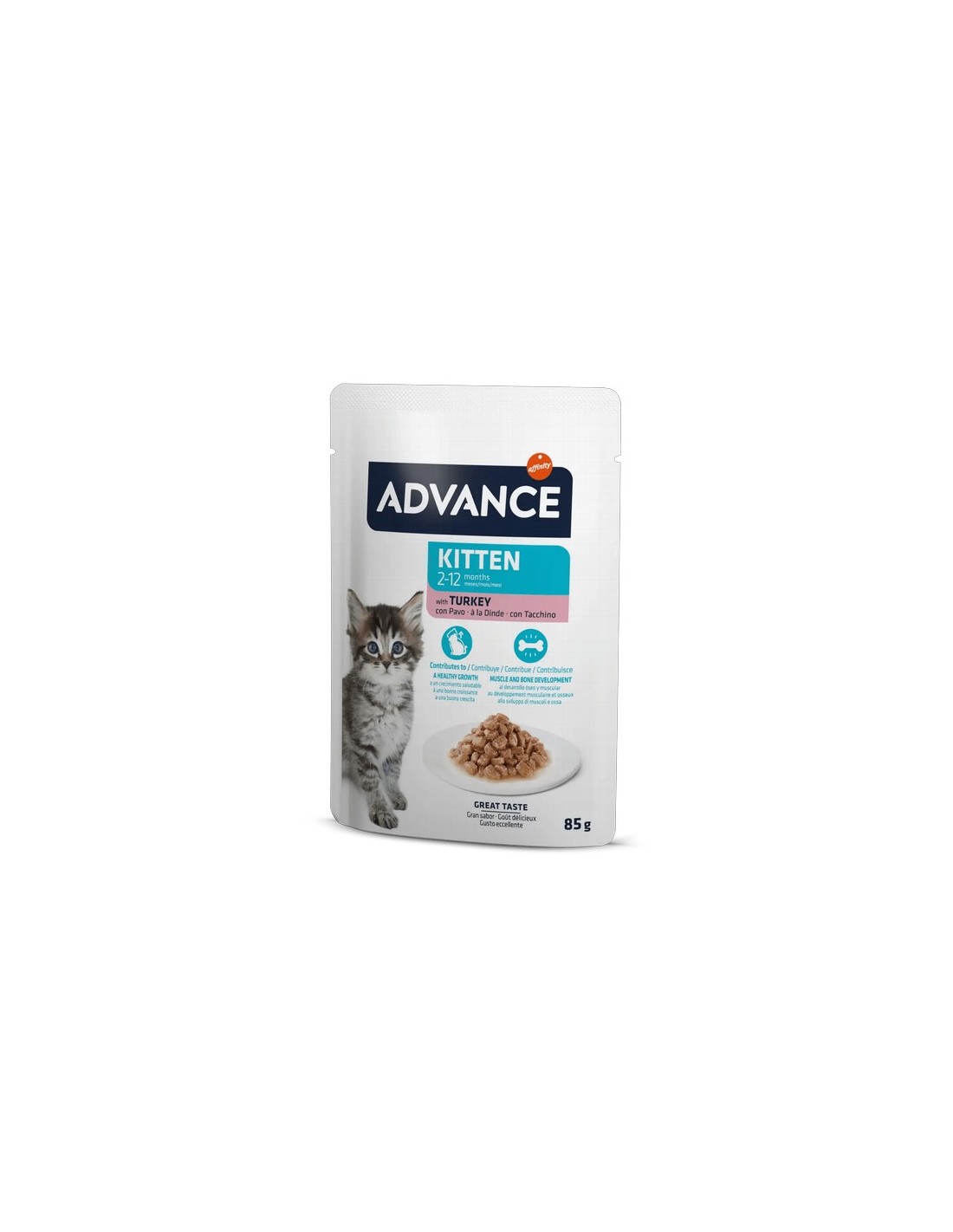 ADVANCE Wet Kitten es un alimento húmedo completo y equilibrado formulado específicamente para cubrir las necesidades de los gatitos.Su fórmula está desarrollada por expertos en nutrición para contribuir al desarrollo óseo y muscular de tu gatito, y a un crecimiento saludable