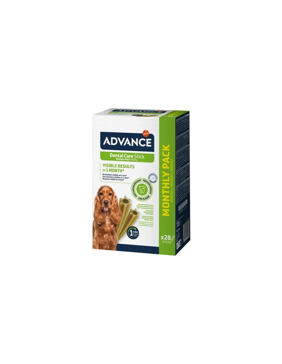 Advance Snacks Dental Care Stick Pack Medium crujientes barritas para perros. Ofrecen triple protección contra la placa y el sarro y promueven un aliento fresco. Con Dentalshield y pirofosfatos.