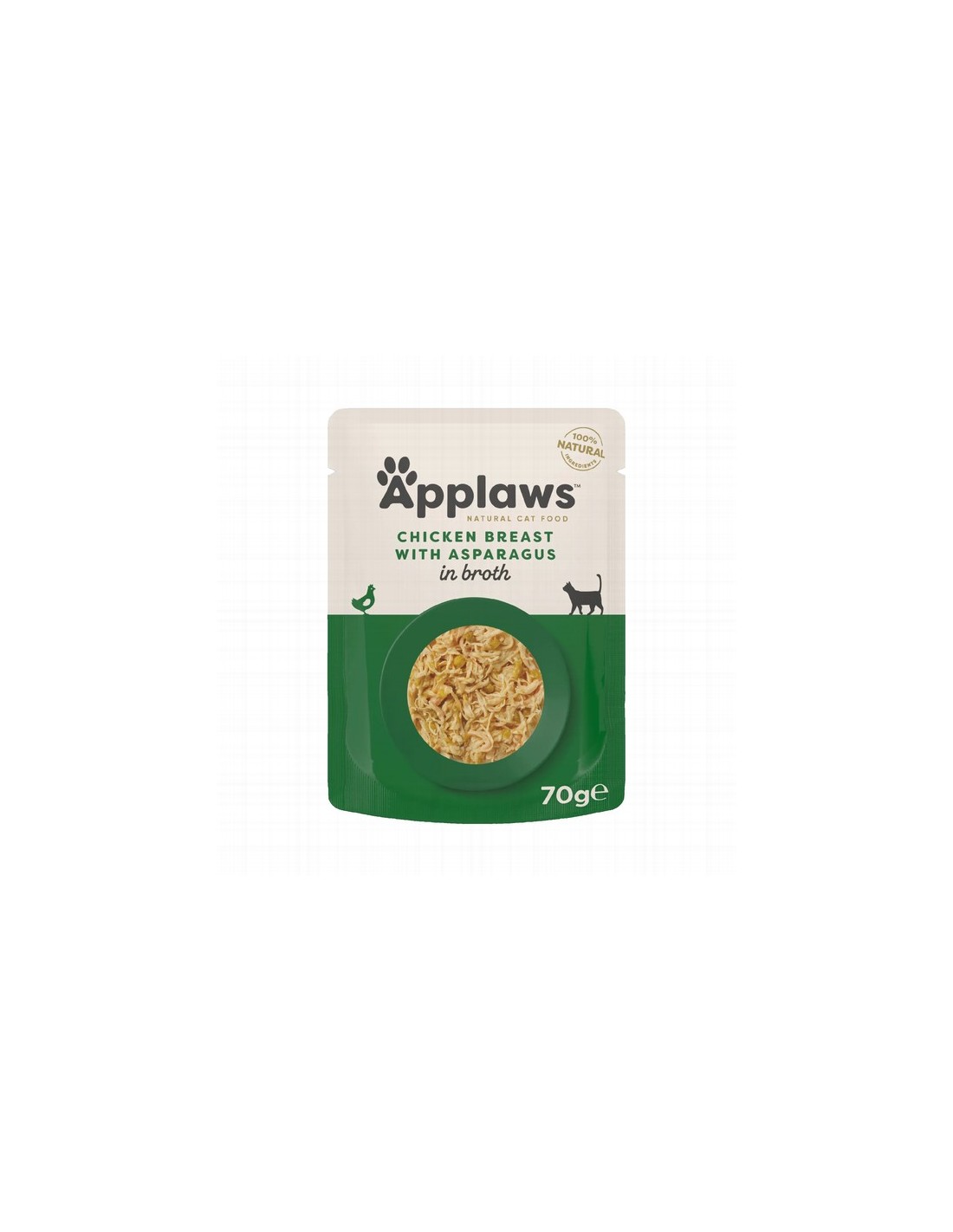APPLAWS Pechuga de Pollo con Esparragos es un alimento complementario de mascotas para gatos adultos 100% completamente natural que sólo contiene los ingredientes