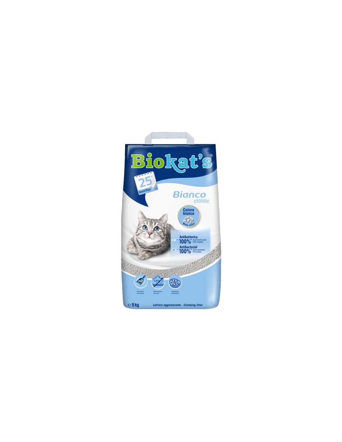 ? Color blanco Los gatos a menudo pueden sufrir trastornos renales, que generalmente se pueden detectar en la orina. En la arena para gatos blanca, se puede ver orina anormal inmediatamente. Se usa un deslumbrante tono blanco para el clásico Bianco de Biokat. Una característica especial de nuestra arcilla blanca es su capacidad de absorción extra fuerte, lo que hace que esta arena para gatos sea muy eficiente.