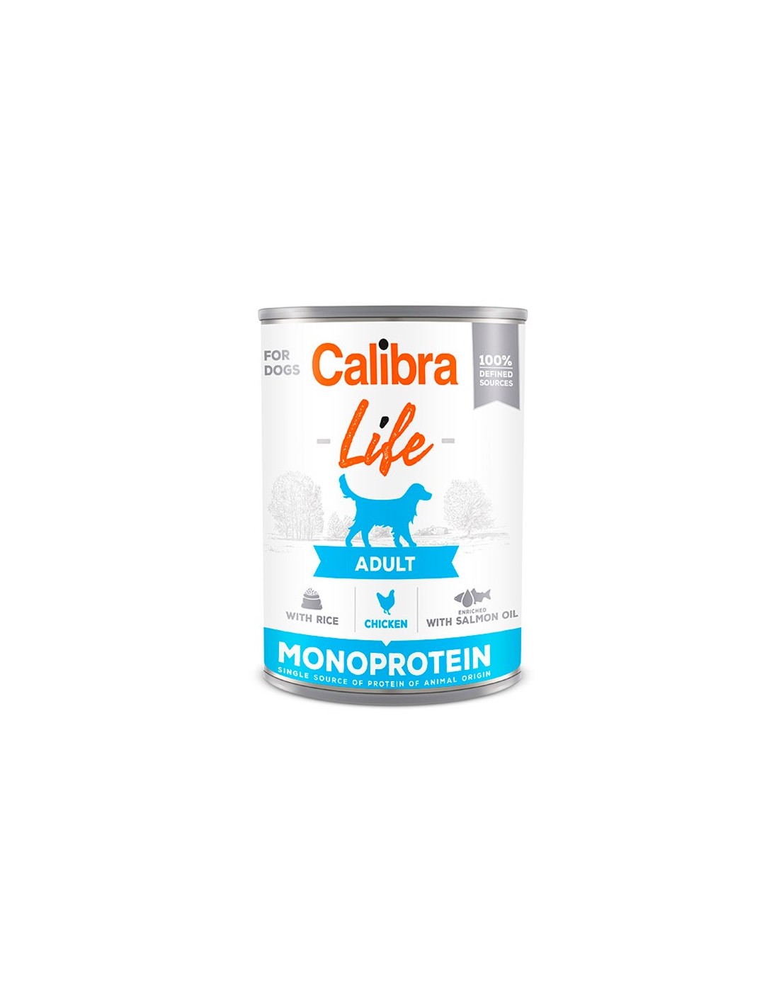 Alimento húmedo sin cereales y monoproteico para perros adultos de todas las razas con proteínas de pollo 100 %.
