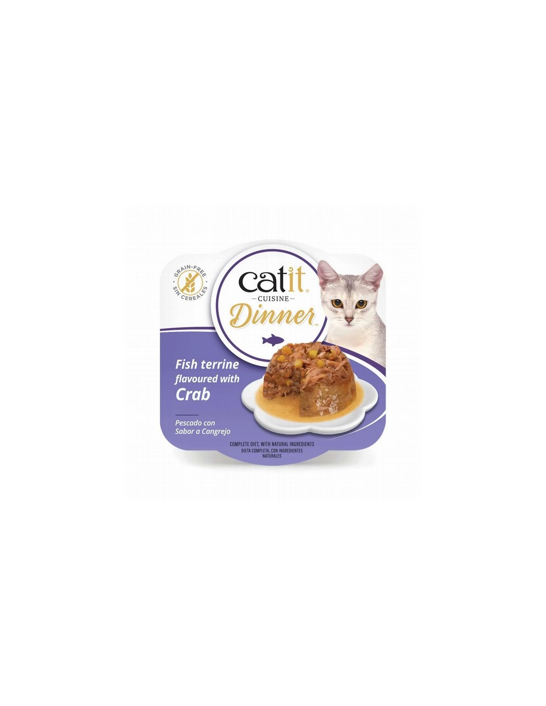 Composición: Caldo de pescado (53 %), atún (20 %), pescado basa (6 %), calabaza (5 %), salmón (5 %), pescado tilapia (5 %), aceite de girasol, minerales, almidón de tapioca.
