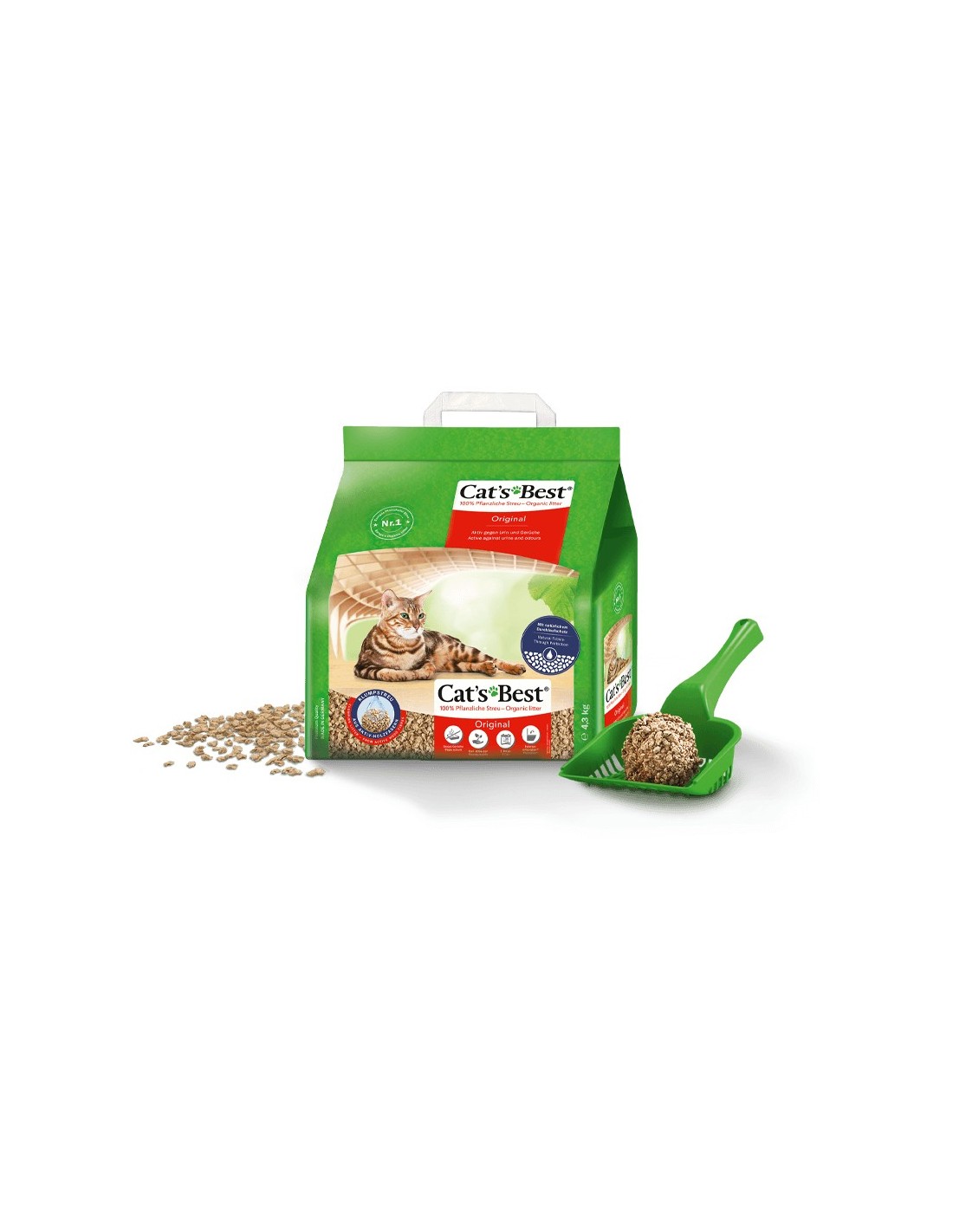 Cat's Best Original Plus es una arena aglomerante biodegradable para gatos. Gracias a ello, puedes eliminar los desechos en la basura orgánica (ten en cuenta la legislación local). Elimina los desechos diarios en el inodoro. - Está hecho de un 100% de fibras vegetales puras: