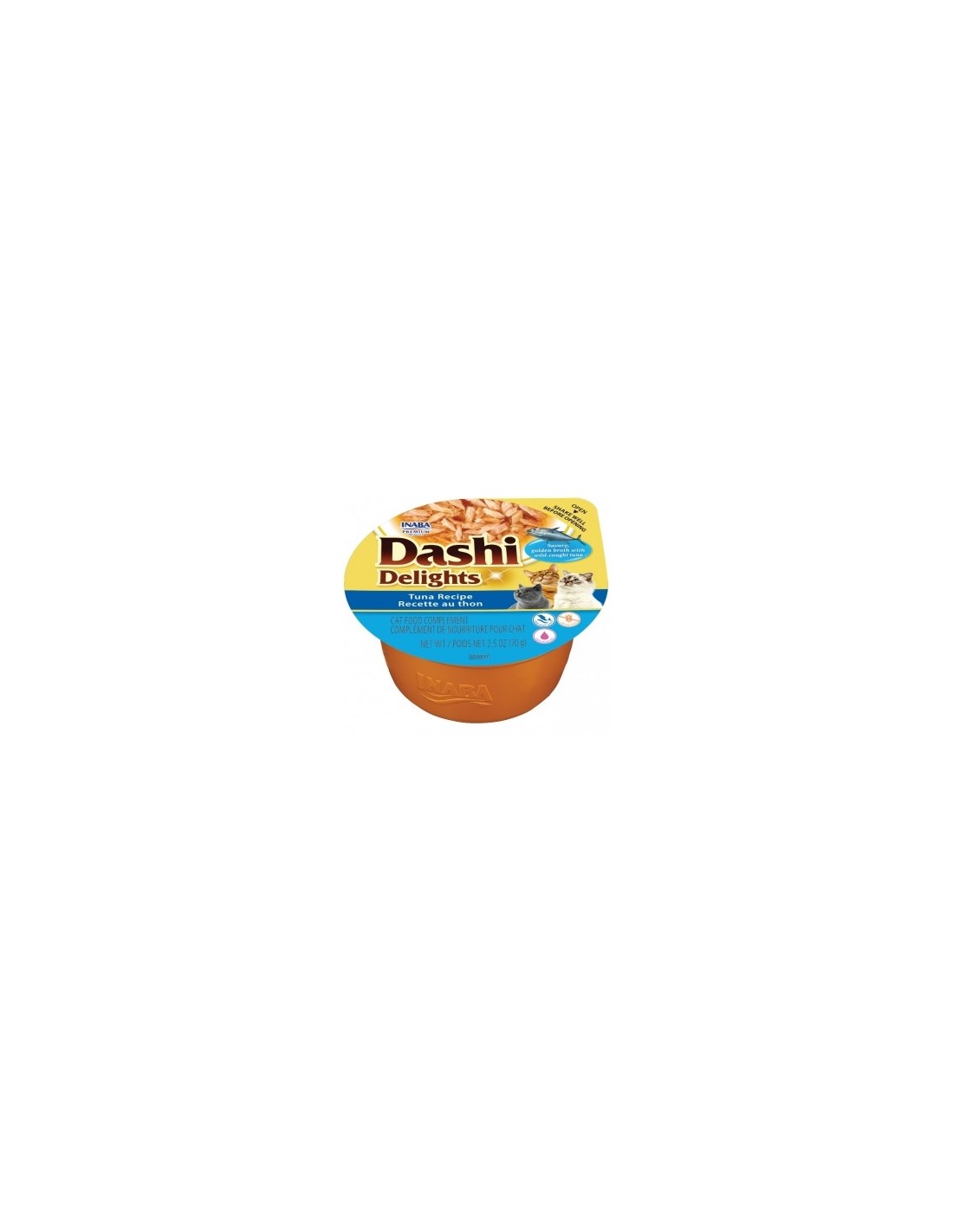 El dashi es un caldo de pescado tradicional japonés a base de hojuelas de atún listado, famoso por su rico y expresivo gusto. Es un manjar único con alta humedad, rico en proteína animal, sin cereales, aditivos indeseables e ingredientes artificiales. Dashi Delights de INABA hará que cada comida sea deliciosa excepcional. ¡Hidratante, nutritiva y siempre deliciosa!