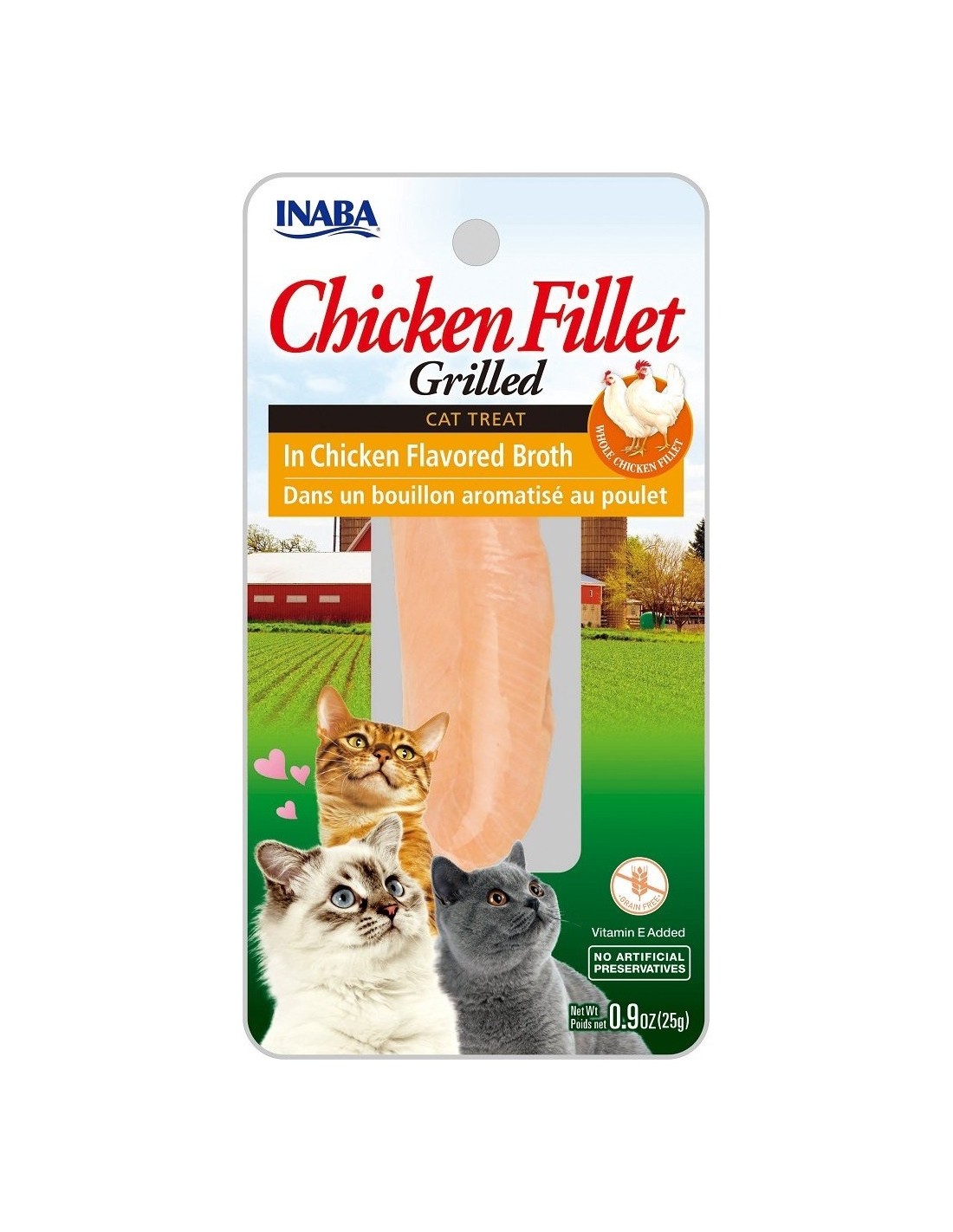 Exquisito filete 100% natural de pollo de granjas locales, envasado al vacío en caldo de pollo y cocinado levemente a la parrilla para que tu gato disfrute en cada bocado y se sienta como un auténtico felino salvaje.