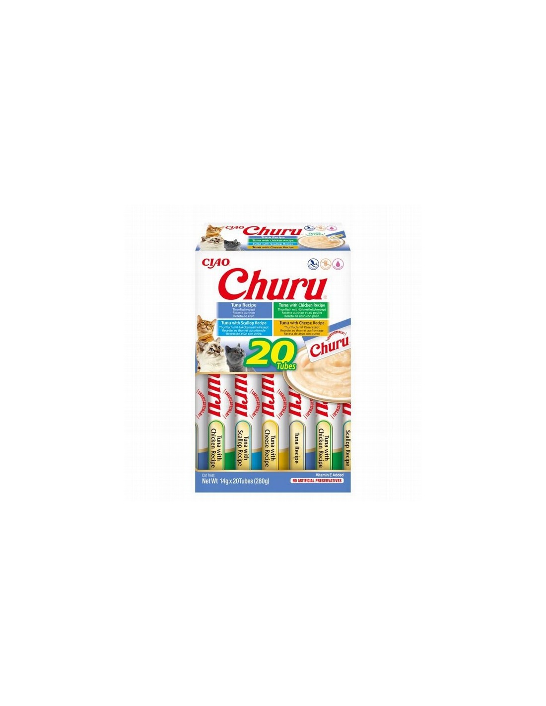 Snacks líquidos elaborados con atún salvaje o pollo criado en granja 100 % natural Contiene: Receta de atún Receta de atún con pollo Receta de atún con vieiras Receta de atún con queso