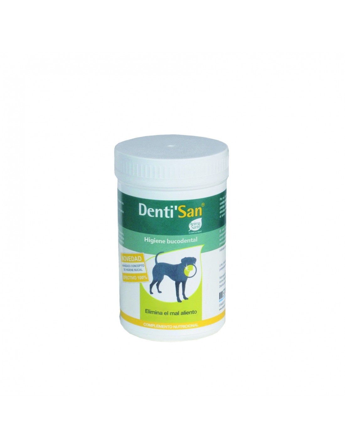 Denti?San es un suplemento nutricional natural para la higiene bucal de perros y gatos. Las plantas con acción antioxidante y depurativa son muy eficaces para mantener un correcto cuidado y protección oral, evitando las causas que producen el mal aliento. El alga marina aporta nutrientes clave para las mascotas, incluyendo minerales, oligoelementos y proteínas.