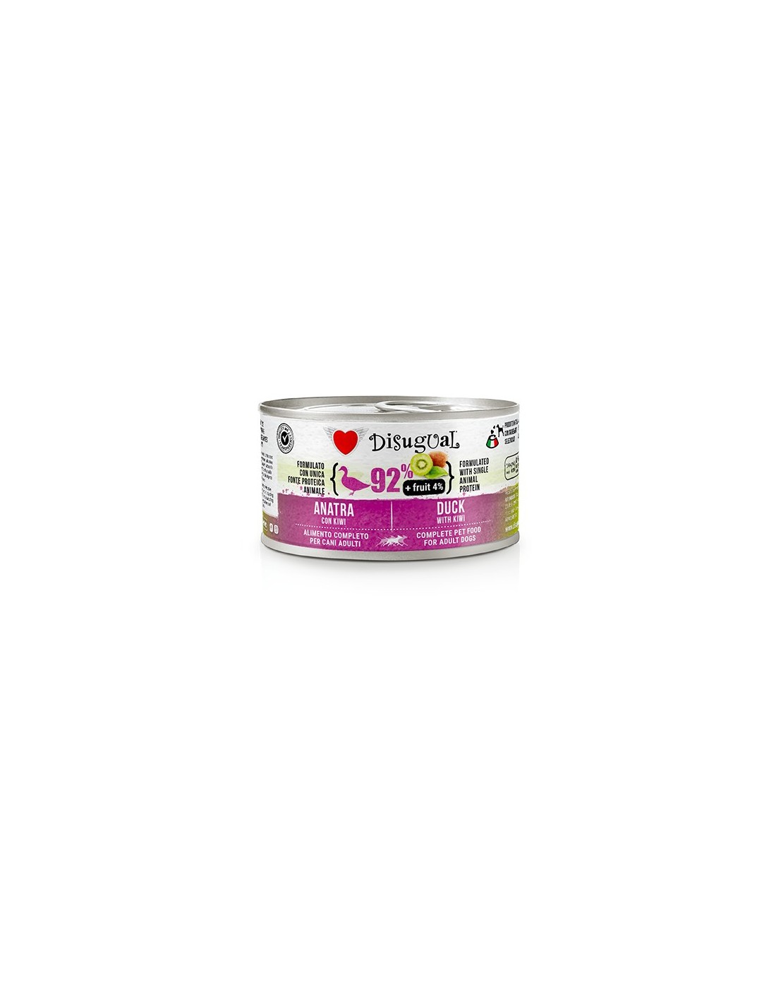 Disugual +Fruit es el alimento húmedo completo para tu perro adulto, formulado con una única fuente de proteína animal y enriquecido con fruta .