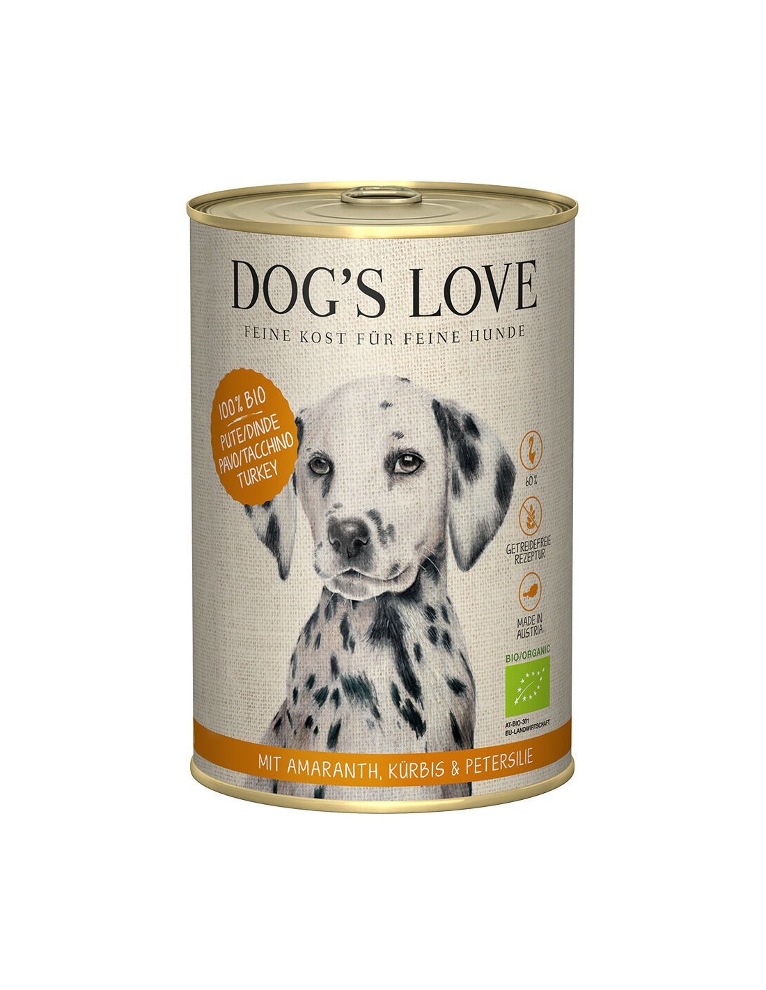 COMPOSICIÓN: carne de pavo bío 60 %, patatas bío 15 %, calabaza bío 7 %, tomates bío 7 %, amaranto bío 5 %, minerales, algas marinas, albahaca bío 0,3 %, perejil bío 0,3 %, aceite de calabaza bío.