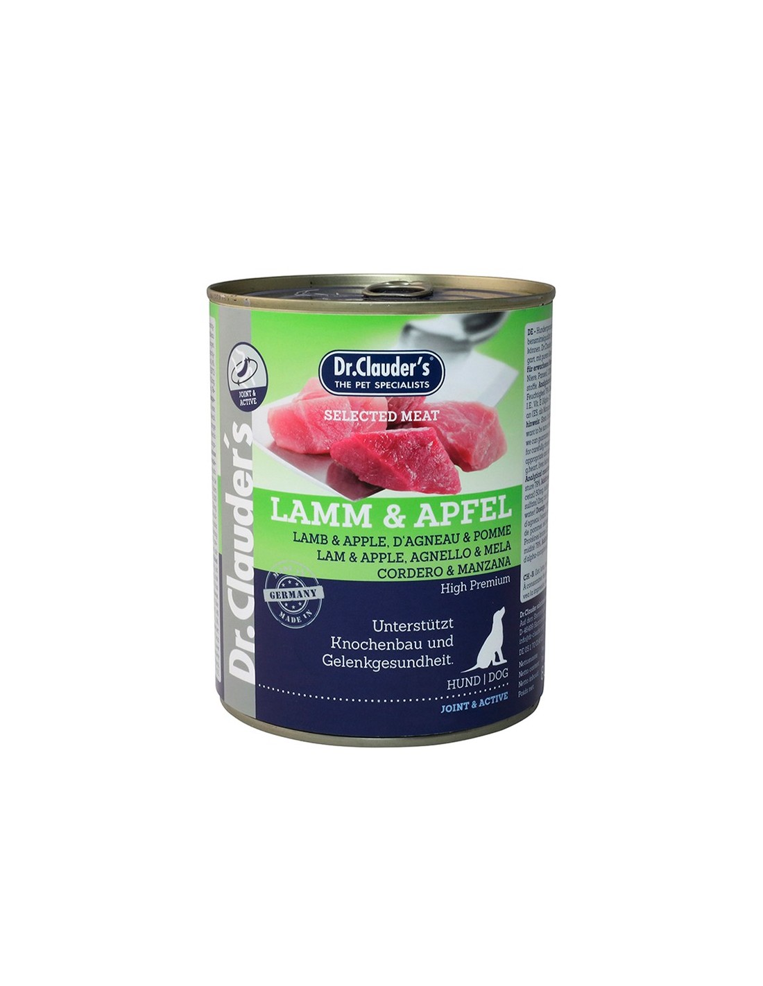 Composición: 60 % de Cordero (del mismo 57 % de pulmón de cordero, 17 % tráqueas de cordero, 12 % carne de cordero, 7 % hígado de cordero, 7 % del corazón de cordero), 4 % hidrolizado de gelatina, 20 % Manzana, 1 % Minerales.
