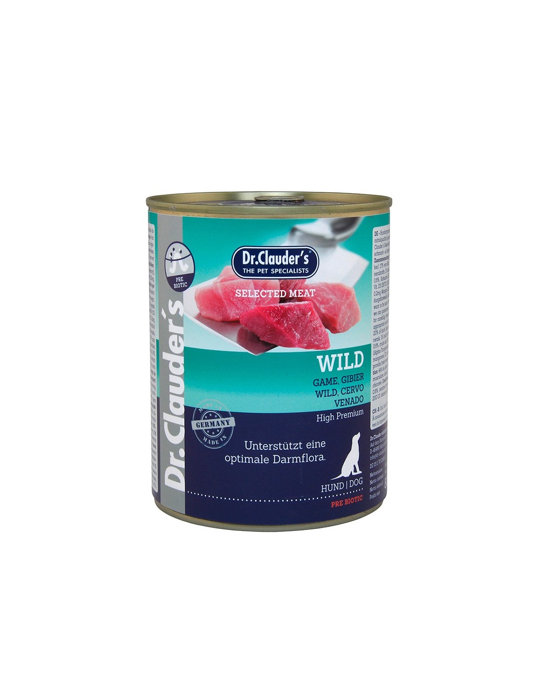 La lata de Carne Seleccionada Venado de Dr. Clauder?s es el alimento húmedo cocinado al vapor y hecho con las mejores carnes aptas de consumo humano