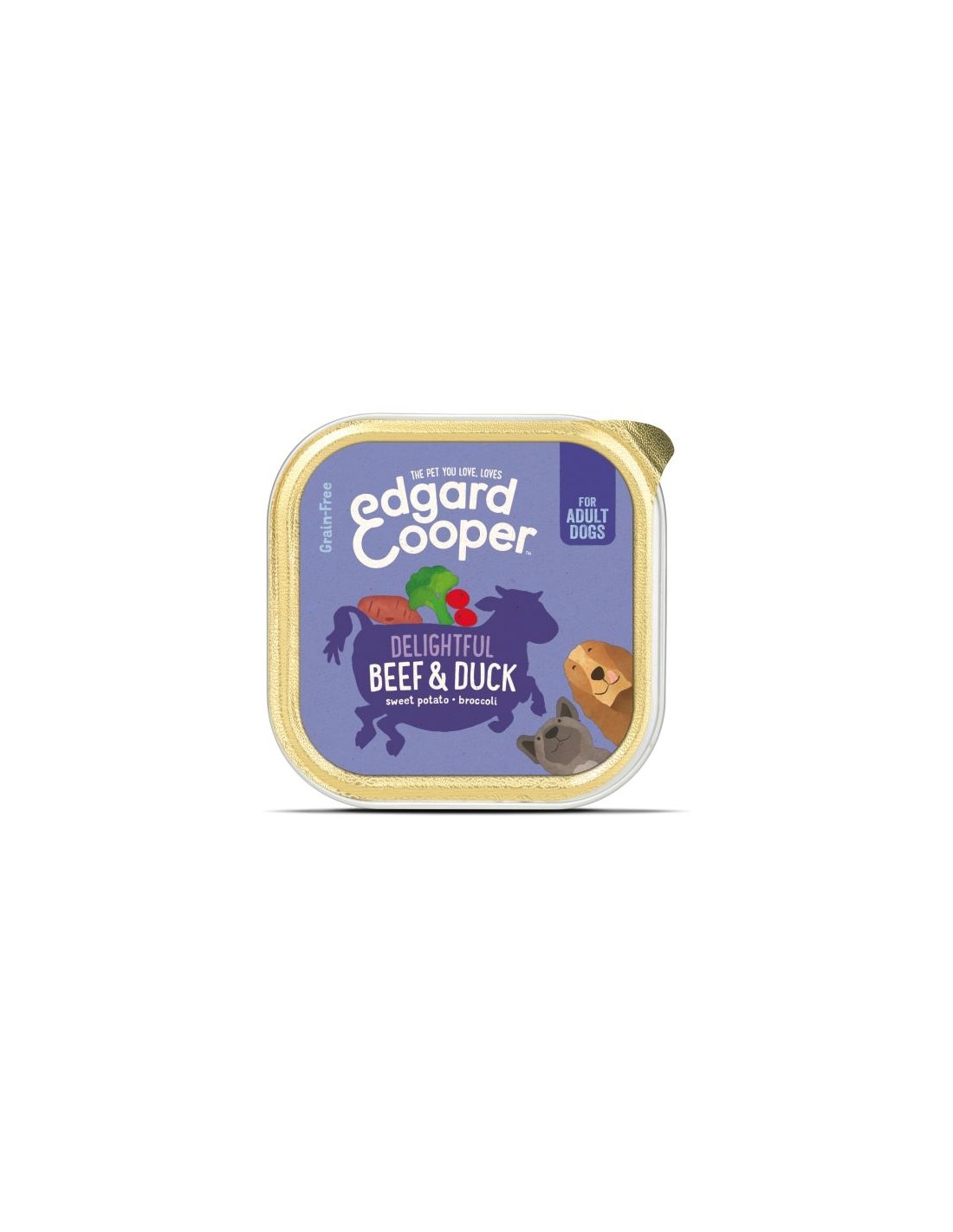 Alimento húmedo natural de calidad superior a base de carne fresca de vacuno, remolacha, broccoli y pera. Edgard Cooper Lata Carne de Vacuno y Pato es una comida natural en lata deliciosa y con ingredientes 100% naturales. Es abundantee en carne fresca y no contiene cereales. La carne de vacuno es rica en hierro, un mineral esencial que refuerza el sistema inmunológico de tu perro.