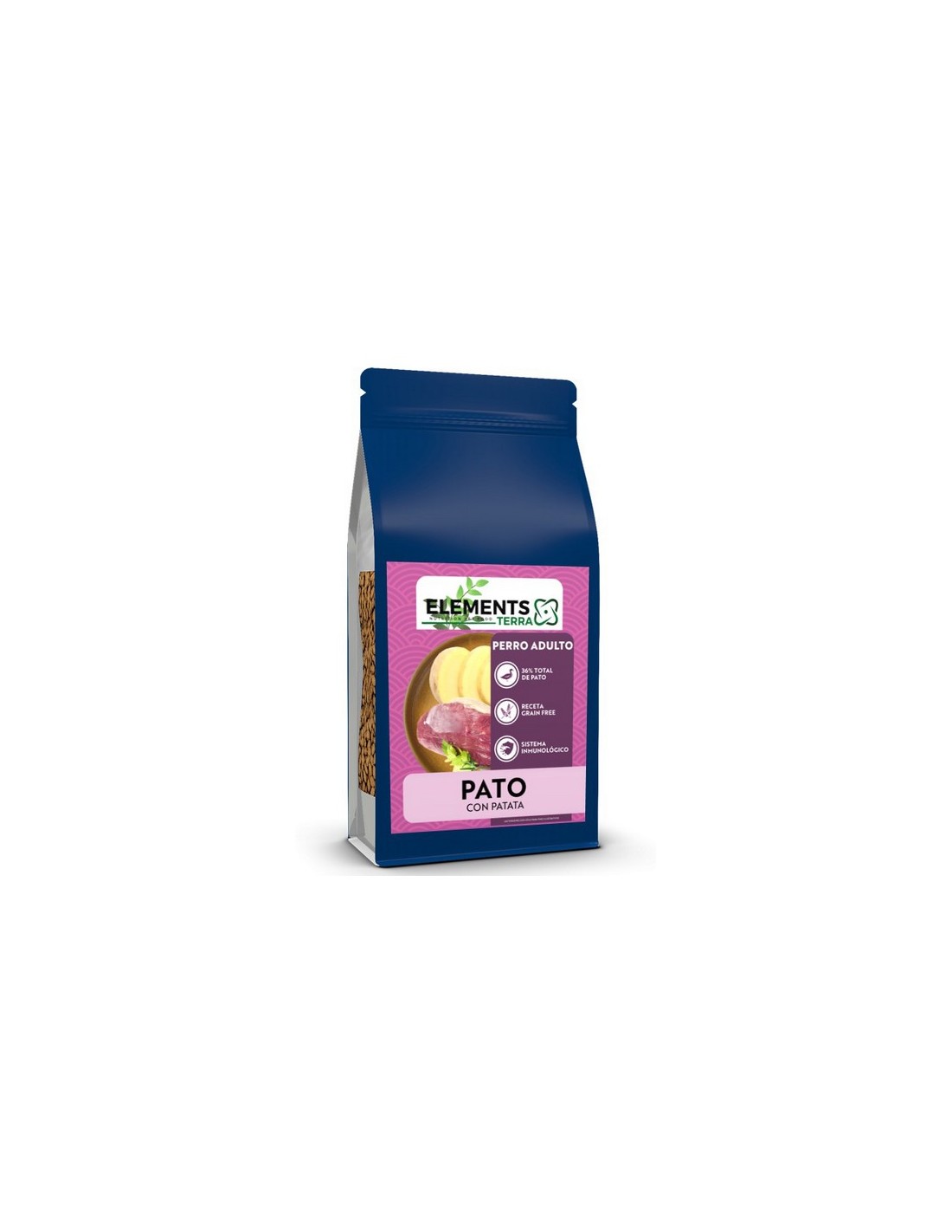 Elements Terra Superpremium Adult Pato con Patata fórmula completa con pato fresco 36% es un alimento completo para perros adultos todas razas para tamaño mediano y grande. Elaborado con ingredientes frescos y naturales.