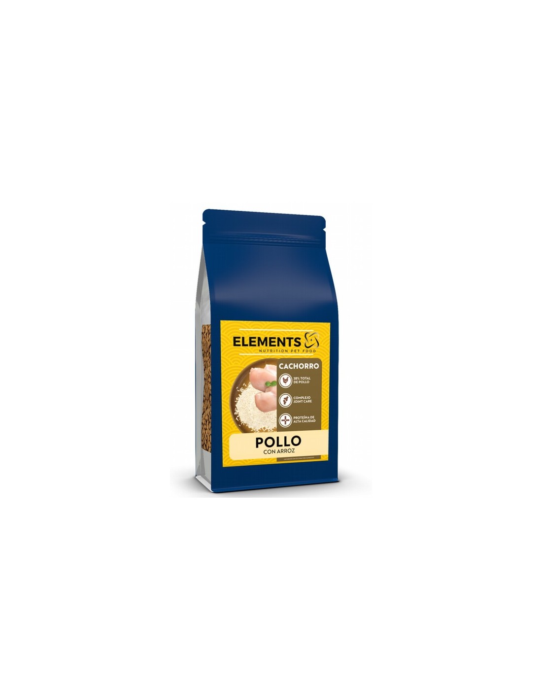 Elements Terra Superpremium Puppy Pollo con Arroz 38% de Pollo que es una fuente de proteína magra rica en aminoácidos esenciales. Es también una buena fuente de vitaminas y minerales, incluyendo vitamina B y hierro, que ayudan a mantener la saludy el bienestar general.