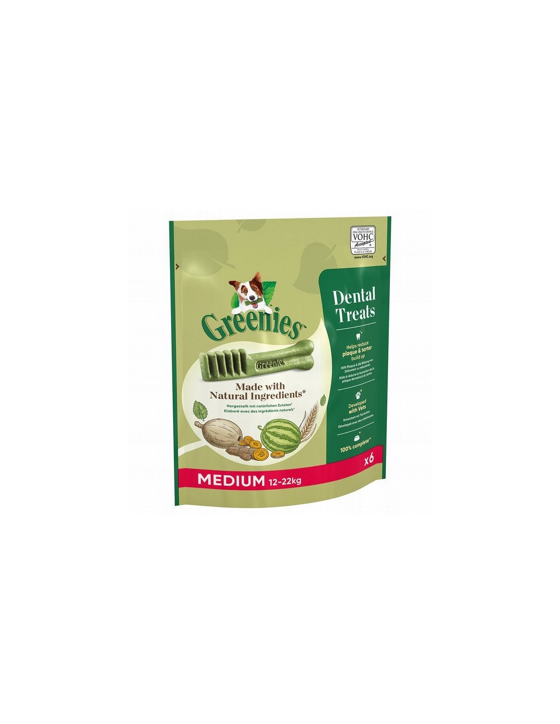 Los snacks Greenies para el cuidado dental te ofrecen una opción eficaz para la limpieza de los dientes y la reducción del sarro. Así se puede minimizar el riesgo de formación de sarro o placa dental. La forma y la textura especiales de Greenies facilitan que tu perro los sujete con las patas delanteras y limpie sus muelas posteriores.