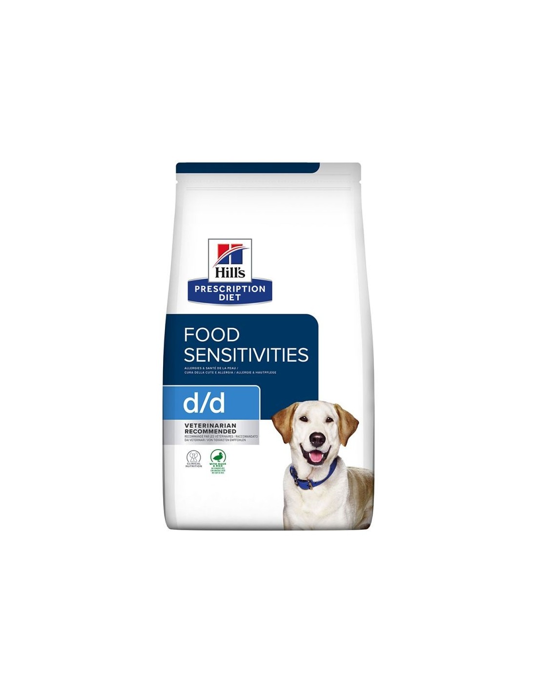 Hill's Canine d/d Prescription Diet con pato y arroz es adecuado para perros que tienen problemas de piel, diarreas o vómitos debido a algún tipo de alergia alimentaria.