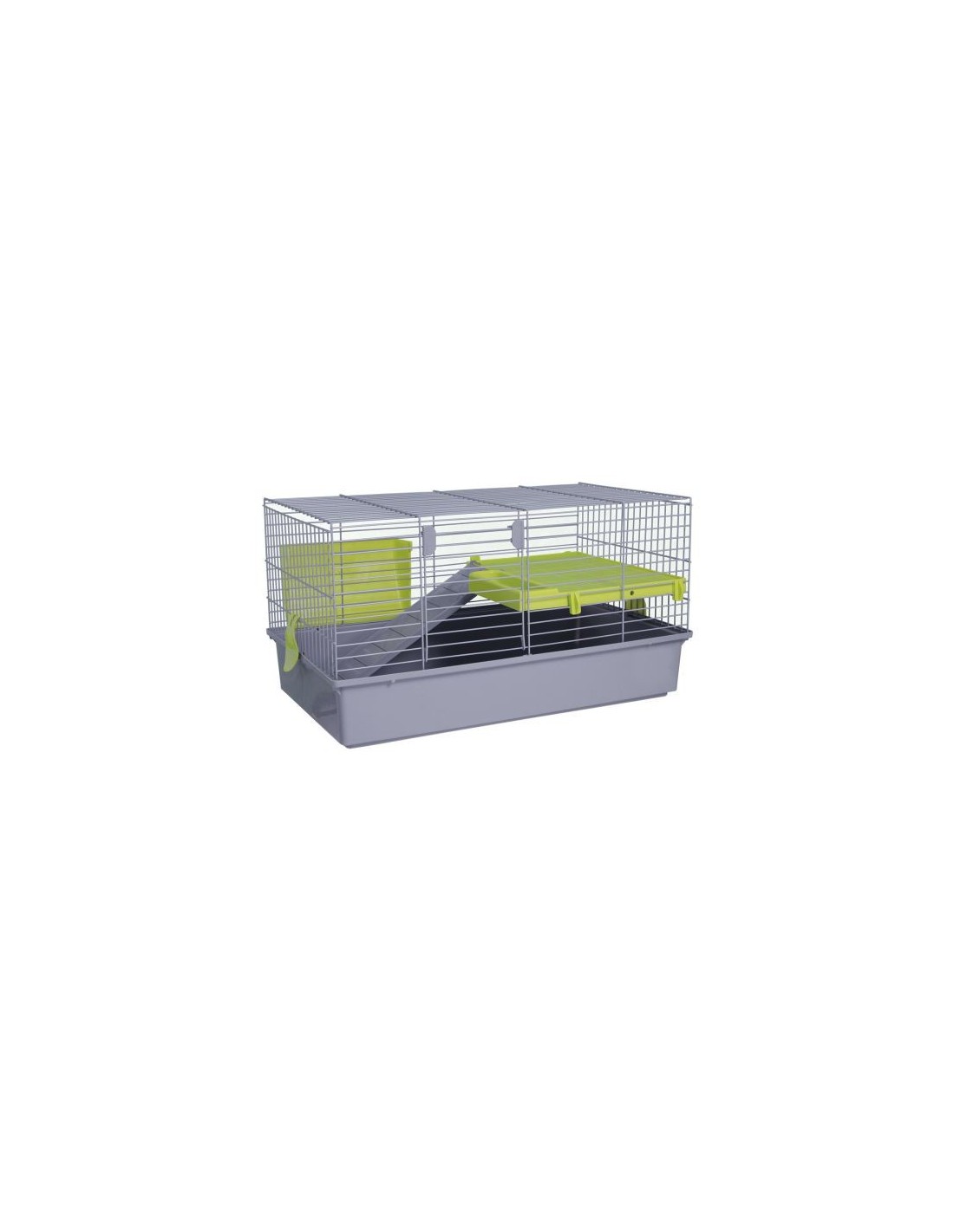 Jaula practica para conejos. Fabricado en Europa (España), con pintura epoxi sin plomo y plástico polipropileno, no tóxico.