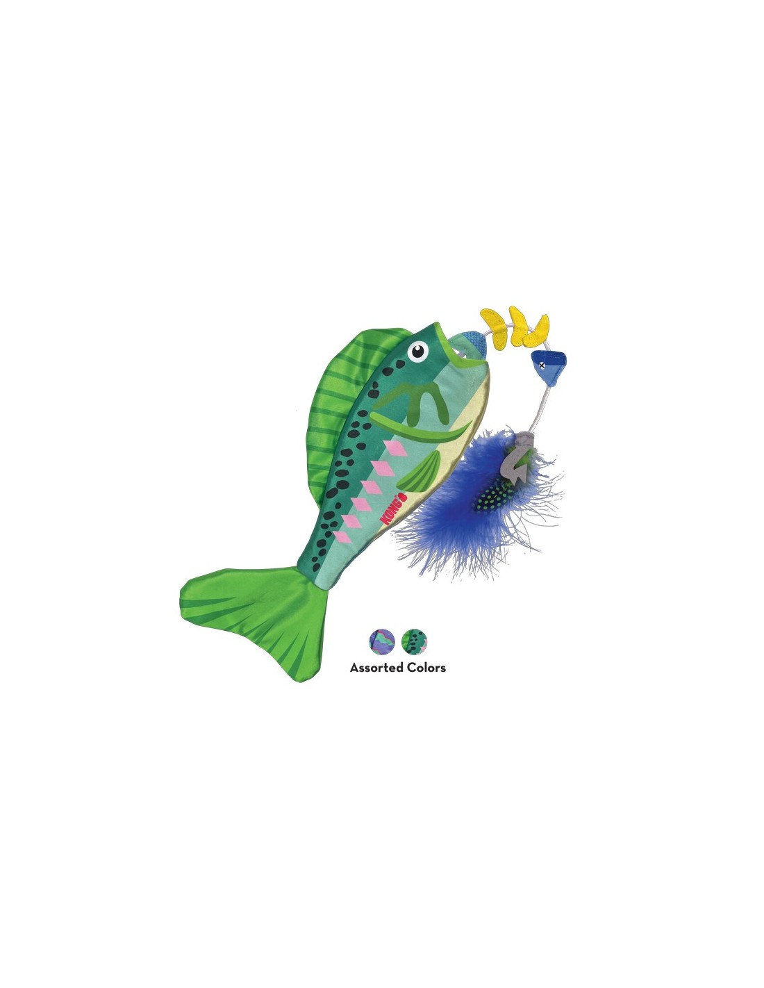 El señuelo con plumas KONG Wrangler Angler invita a los gatos a atraparlo. Cuando lo hacen, la cuerda elástica se estira y desenfunda las espinas del pez, lo que convierte al juguete en un divertido filete que satisface sus instintos naturales. Las espinas se retraen para un juego interminable, que se prolonga con la hierba gatera KONG North American Premium Catnip y los crujidos en el cuerpo del pez. Este juguete largo, llamativo y brillante invita a una lucha saludable con todo el cuerpo.
