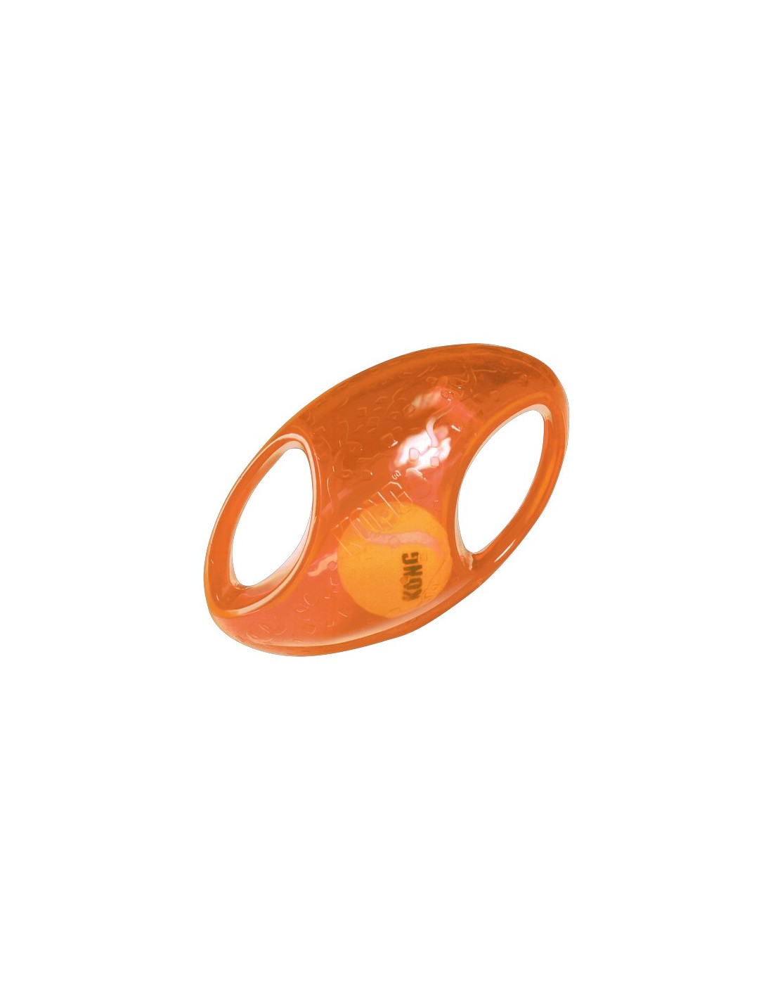 El KONG Jumbler es una pelota dos en uno para el doble de diversión interactiva. La pelota de tenis en el interior y el sonoro chirriador incitan a jugar, mientras que las asas permiten recoger y agitar la pelota más fácilmente. El Jumbler ha sido diseñado como juguete resistente y es ideal para jugar a buscar. Disponible en dos formas y tamaños, el KONG Jumbler garantiza un juego emocionante y activo para usted y su perro.