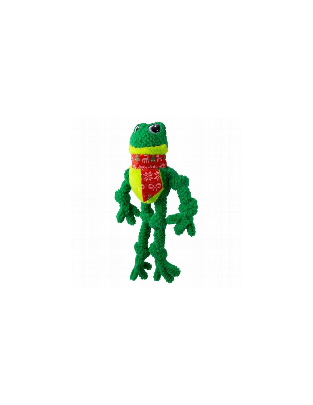 La rana KONG Holiday Knots aporta diversión festiva a la vida diaria de tu perro! Con su esqueleto interior de cuerda, este compañero de juegos es especialmente robusto y resulta perfecto para juegos de tirones salvajes, sacudidas extensas o simplemente para llevarlo de un lado a otro. El chirriador integrado en la cabeza proporciona una motivación adicional y prolonga el tiempo de juego: