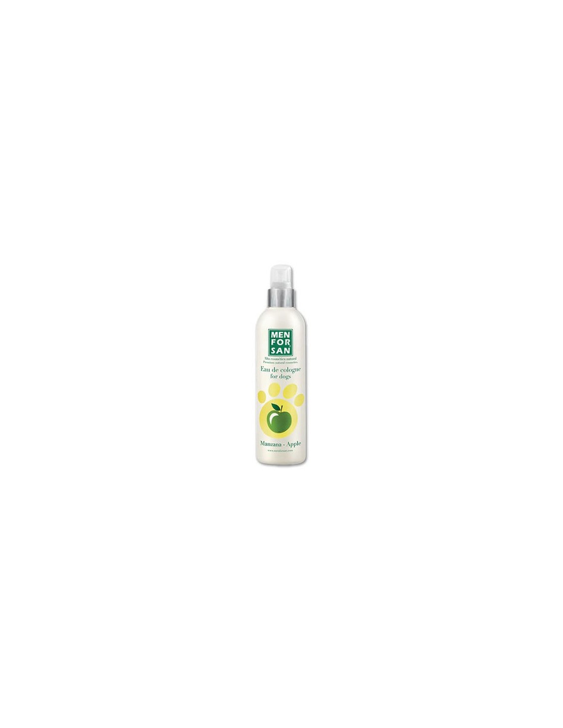 Menforsan Agua de colonia Manzana para perros con fragancias frutales naturales especialmente creadas para proporcionar después del baño un olor fresco y un intenso efecto desodorante muy agradable respetando la piel y las propiedades olfativas del animal.