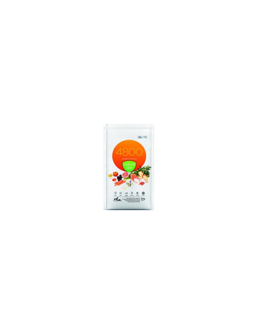 Natura Diet 4800 Alta Energia Alimento completo, equilibrado y muy apetitoso con una elevada densidad energética y nutritiva para satisfacer las necesidades de perros muy activos: de competición, lactancia y en períodos de tiempo muy frío. Gracias a su alta concentración energética también es adecuado para animales de razas grandes con riesgo de torsión de estómago.