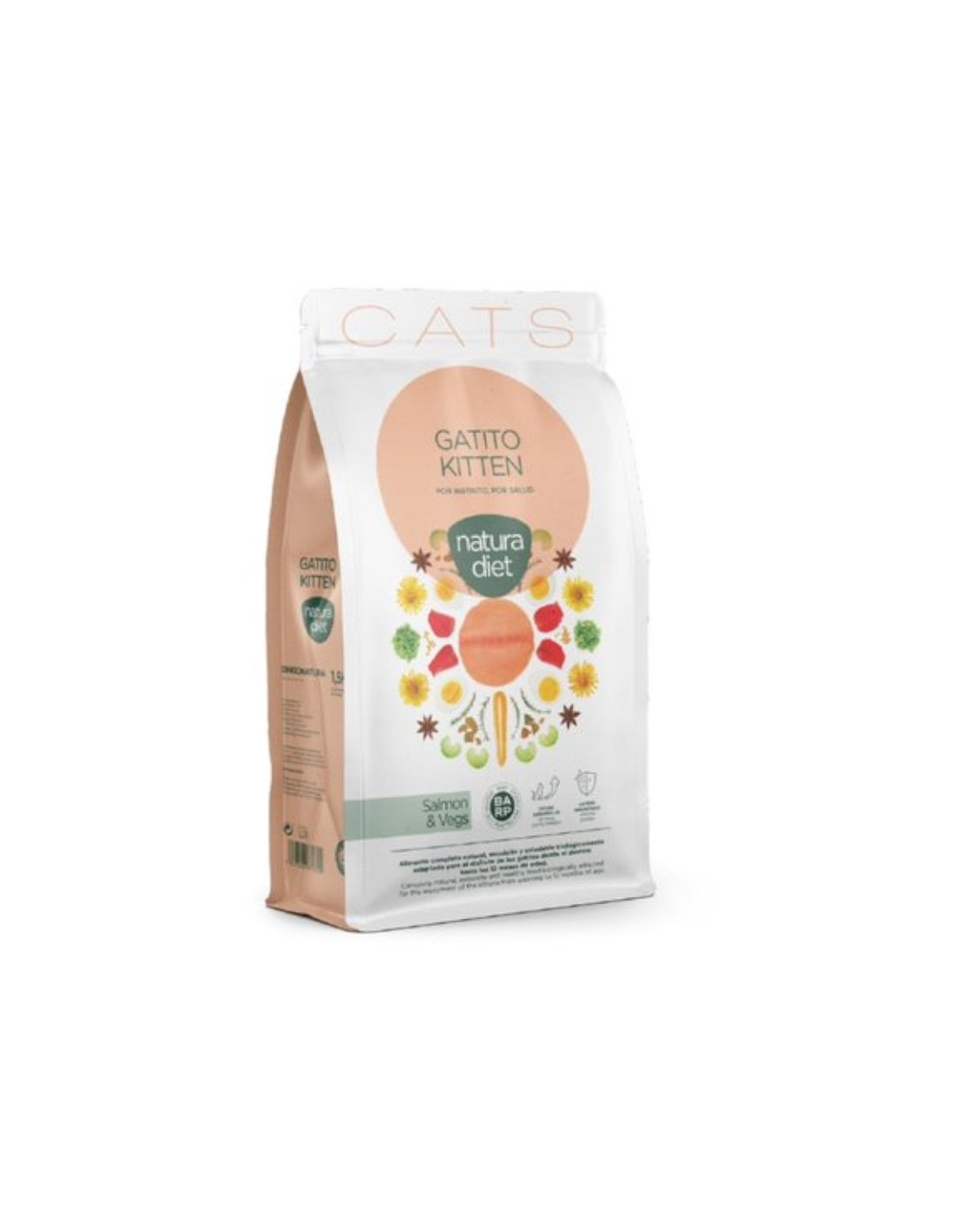 Composición: Salmón noruego (32%)*, concentrado de proteínas vegetales AD**, grasa de pollo, harina flor de maíz ( fuente de energía y fibra sostenible) *, patata *, arroz, levadura de cerveza premium*, fibras vegetales*, aceite de pescado rico en omega 3 (0,2%), huevo entero (0.1%)*, minerales. ProHealth (0.01%) *: zanahoria, semilla de arándano rojo, jengibre, ginkgo biloba, espirulina, inulina, raíz de achicoria, pétalos de rosa, menta gatera, valeriana, Boswellia, Psyllium plantago ovata, alfalfa, perejil, anís, fenogreco, apio. Prosafe: Romero* y aceite de girasol rico en tocoferoles.