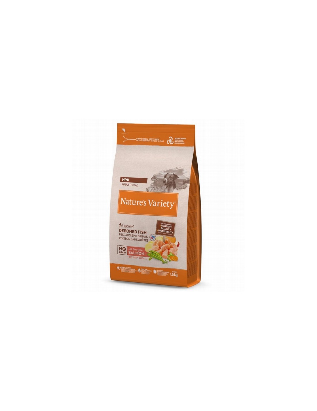 Nature's Variety No Grain Adult Mini salmón mima a tu perro con su delicioso sabor y, además, gana puntos gracias a su receta equilibrada. La composición se adapta perfectamente a las necesidades energéticas y nutricionales de los perros adultos de razas pequeñas, lo que resulta perfecto para la nutrición diaria.