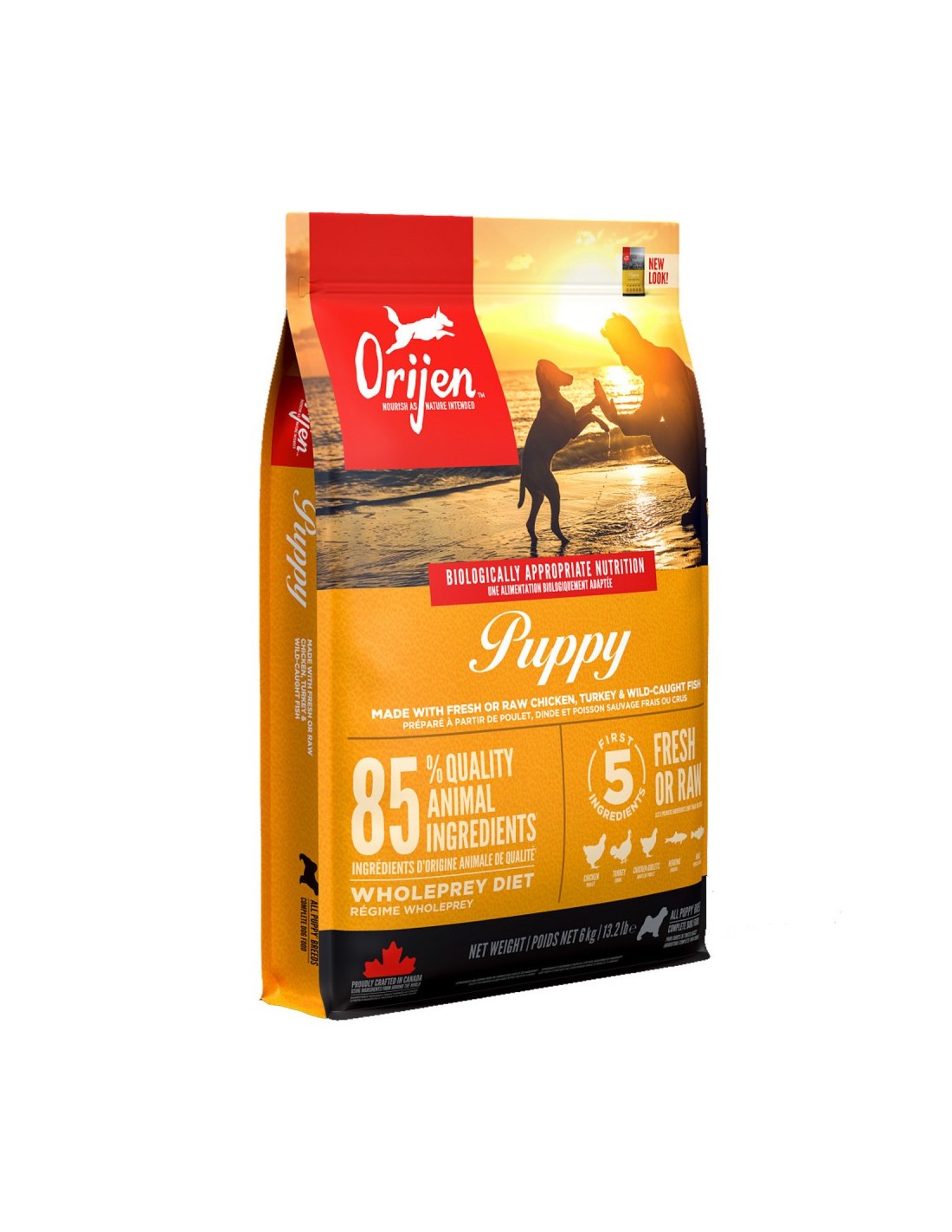 Diseñado para ajustarse a la dieta natural de su cachorro, ORIJEN PUPPY refleja el saludable y diverso equilibrio de carnes, frutas, verduras e hierbas que ayudan perfectamente al crecimiento de los cachorros y perros jóvenes.