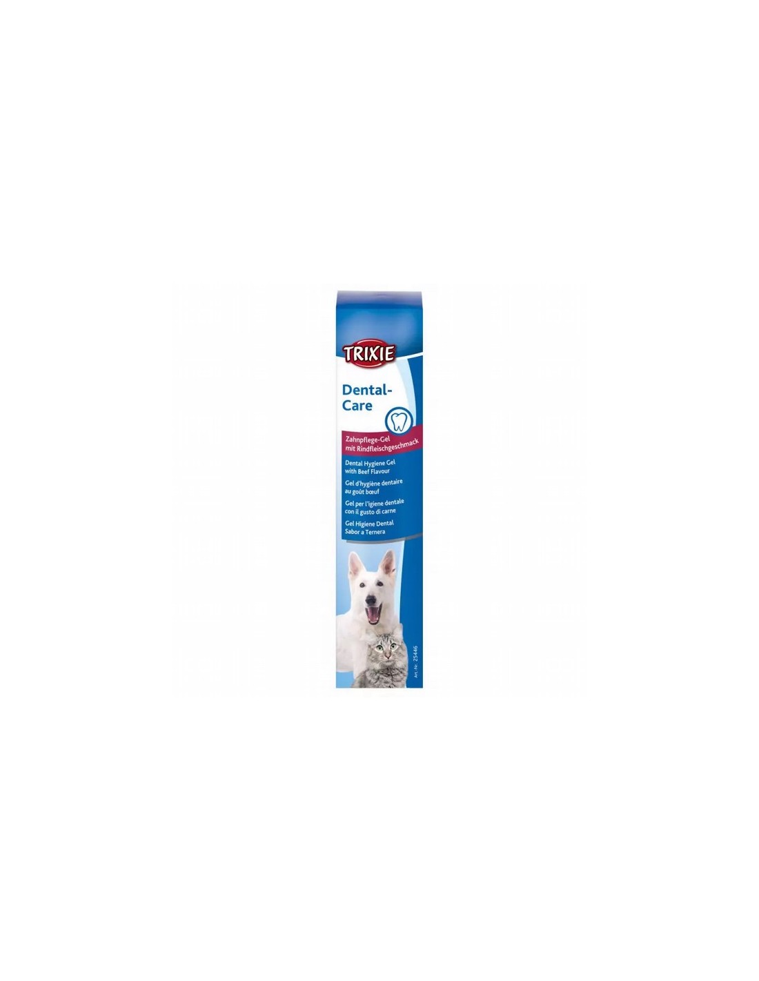 INFORMACIÓN SOBRE EL CUIDADO DE LOS DIENTES: Cepillar los dientes del perro es una forma eficaz de prevenir la aparición de placa y sarro. Para acostumbrar a los perros a la pasta de dientes recomendamos que ésta se ponga sobre una galleta para perros. El paso siguiente sería aplicarlo directamente sobre los dientes y las encías del perro. Se debe de empezar por masajear suavemente antes de empezar a cepillar los dientes del perro.