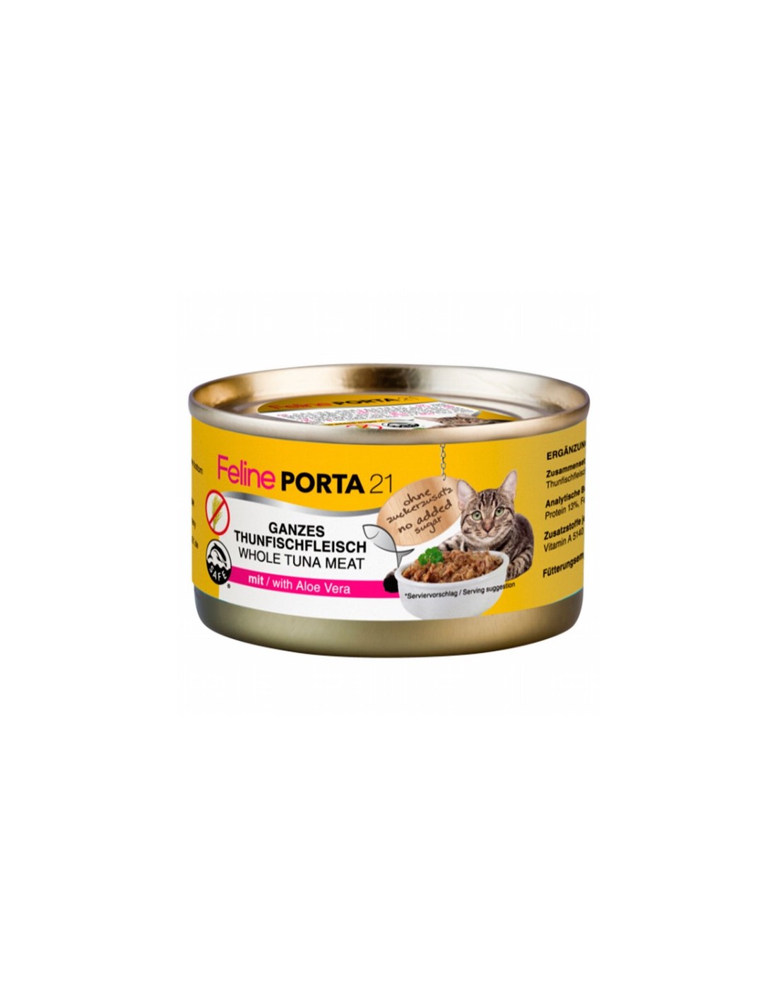 Porta 21 Feline Atun con Aloe Lata Lata comida para gatos es un producto puramente natural con ingredientes naturales. Es producido sólo con sustancias naturales, sin conservantes químicos. Sólo se utiliza la mejor carne de atún blanca. Además se añaden vitaminas A, D y E, así como taurina.