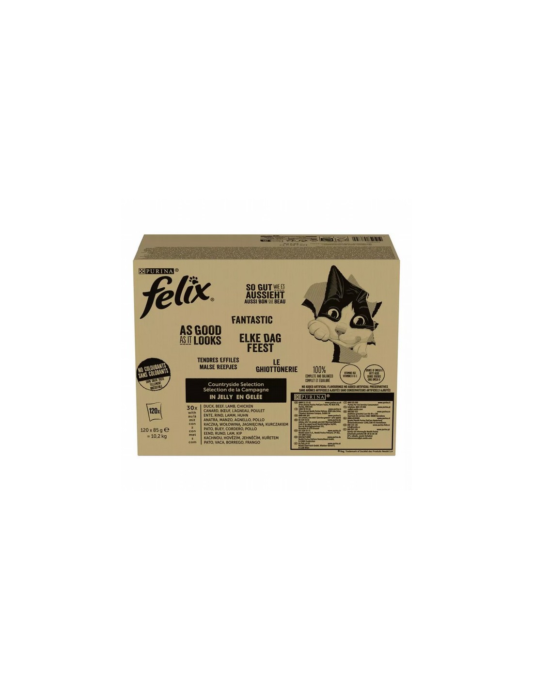 Comida húmeda para gatos en un económico jumbopack, elaborada con deliciosa carne. 120 sobres con cuatro variedades sabrosas de comida tierna y jugosa en gelatina