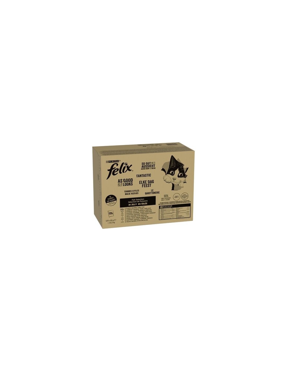 Comida húmeda para gatos en un económico jumbopack, elaborada con deliciosa carne. 120 sobres con cuatro variedades sabrosas de comida tierna y jugosa en gelatina
