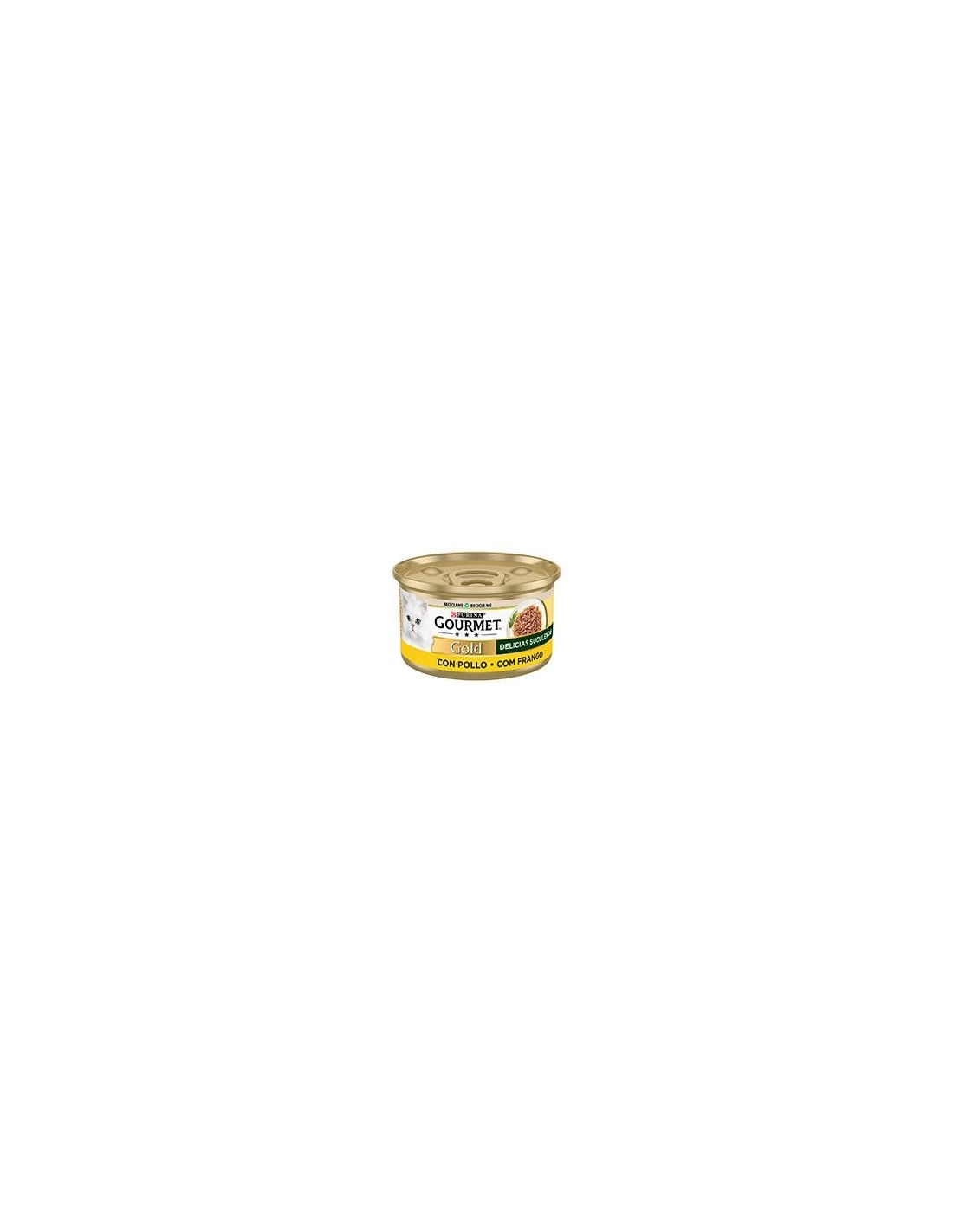 PURINA® GOURMET® Gold Delicias Suculentas en lata de 85g. Comida húmeda para gato con Pescado del Océano. Refinados cortes jugosos y suculentos.
