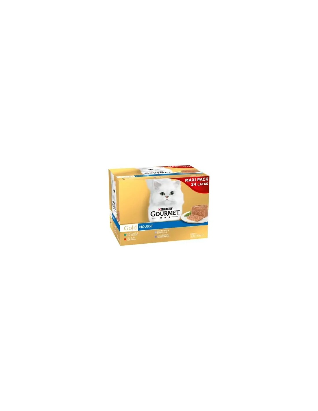 Gourmet Gold Mousse Multipack de carnes son latas de comida húmeda para gatos adultos y sanos que suponen una dieta de excelente calidad para tu mascota. La variedad mousse es una deliciosa receta con suavidad similar al paté, muy delicada y jugosa. Los gatos disfrutan probando diferentes sabores y texturas y Gourmet Gold es perfecta para satisfacerlos, puesto que ofrece un amplio abanico de sabores.