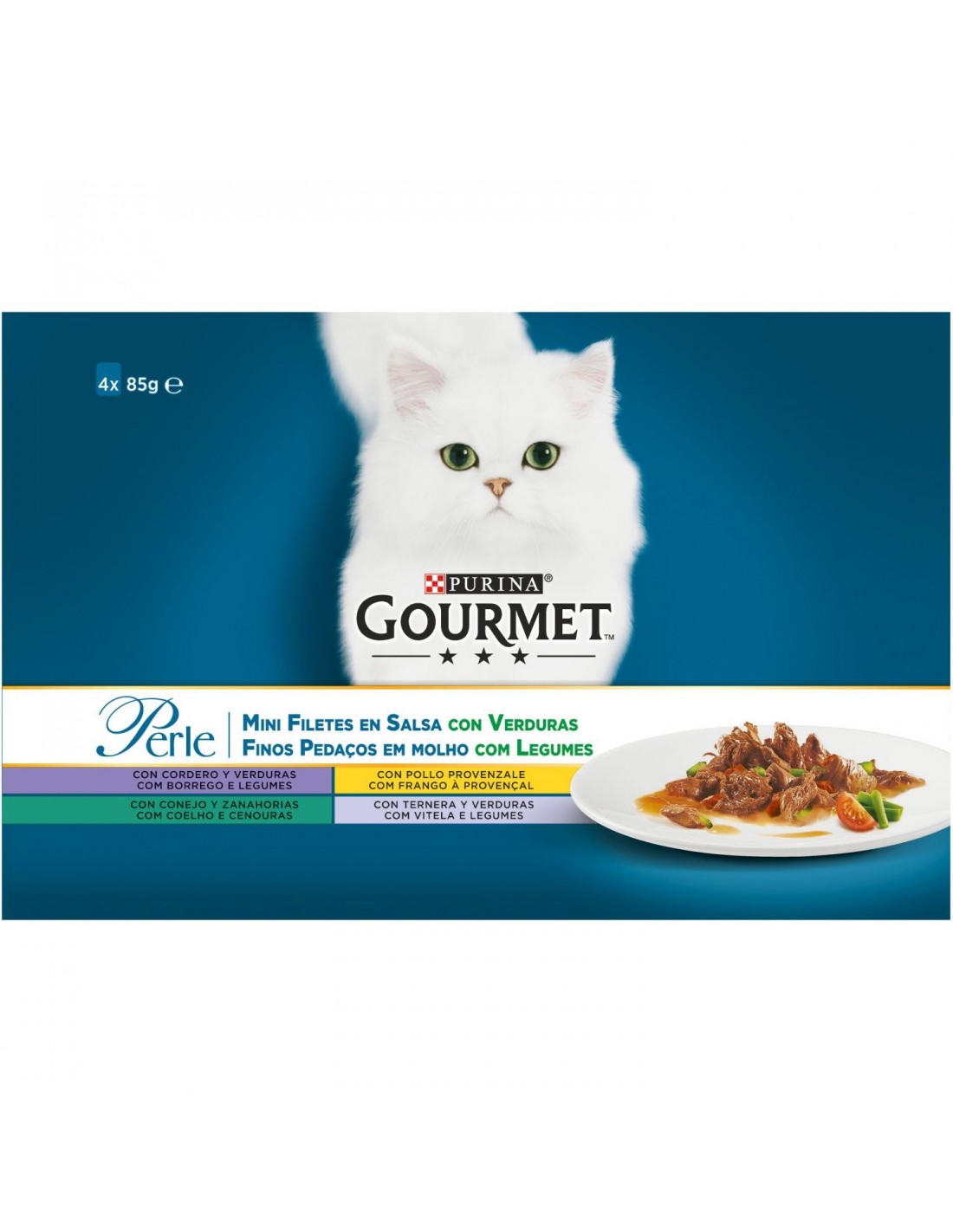 GOURMET PERLE FINAS LÁMINAS EN SALSA CON TERNERA, CONEJO, POLLO Y CORDERO Tu gato es un gran entendido y a veces es muy difícil tentarlo. Por eso, GOURMET Perle ha creado Finas Láminas en Salsa, recetas delicadas que despertarán los sentidos de tu gato con una irresistible experiencia de sabor para cada día. Finos bocados con carnes o pescados cortados en finas láminas.
