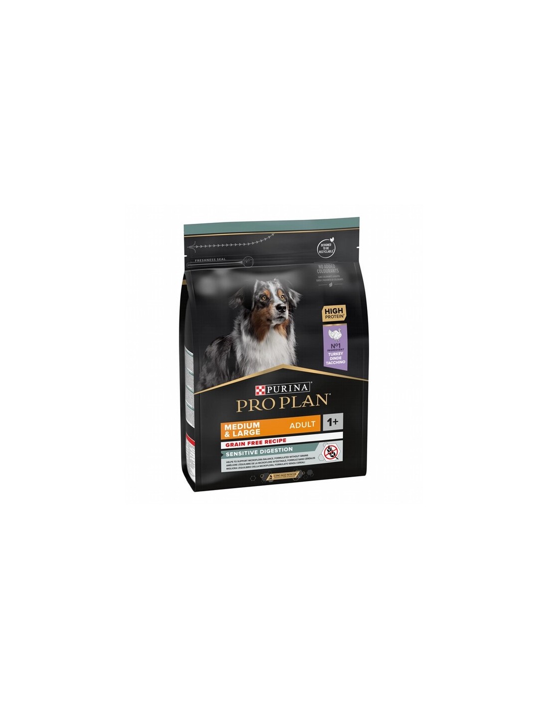 PURINA® PRO PLAN® Grain Free Formula Medium & Large Adult Sensitive Digestion Rico en Pavo con n OPTIDIGEST® es un alimento seco completo para perros de razas pequeñas y miniatura con una digestión sensible.