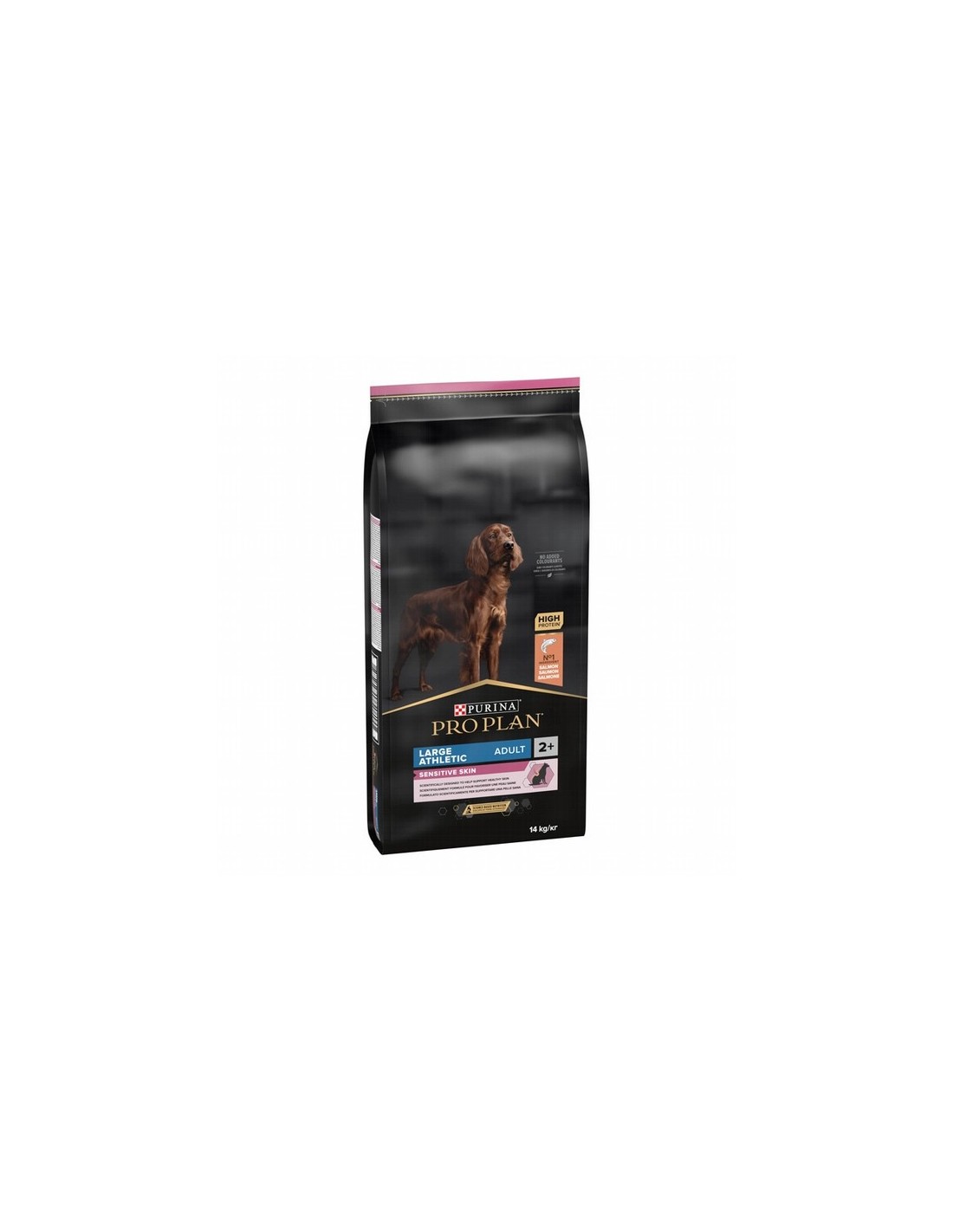 PURINA® PRO PLAN® Large Athletic Adult sensitive skin con OPTIDERMA® rico en salmón es un alimento seco completo para perros grandes atléticos con la piel sensible.