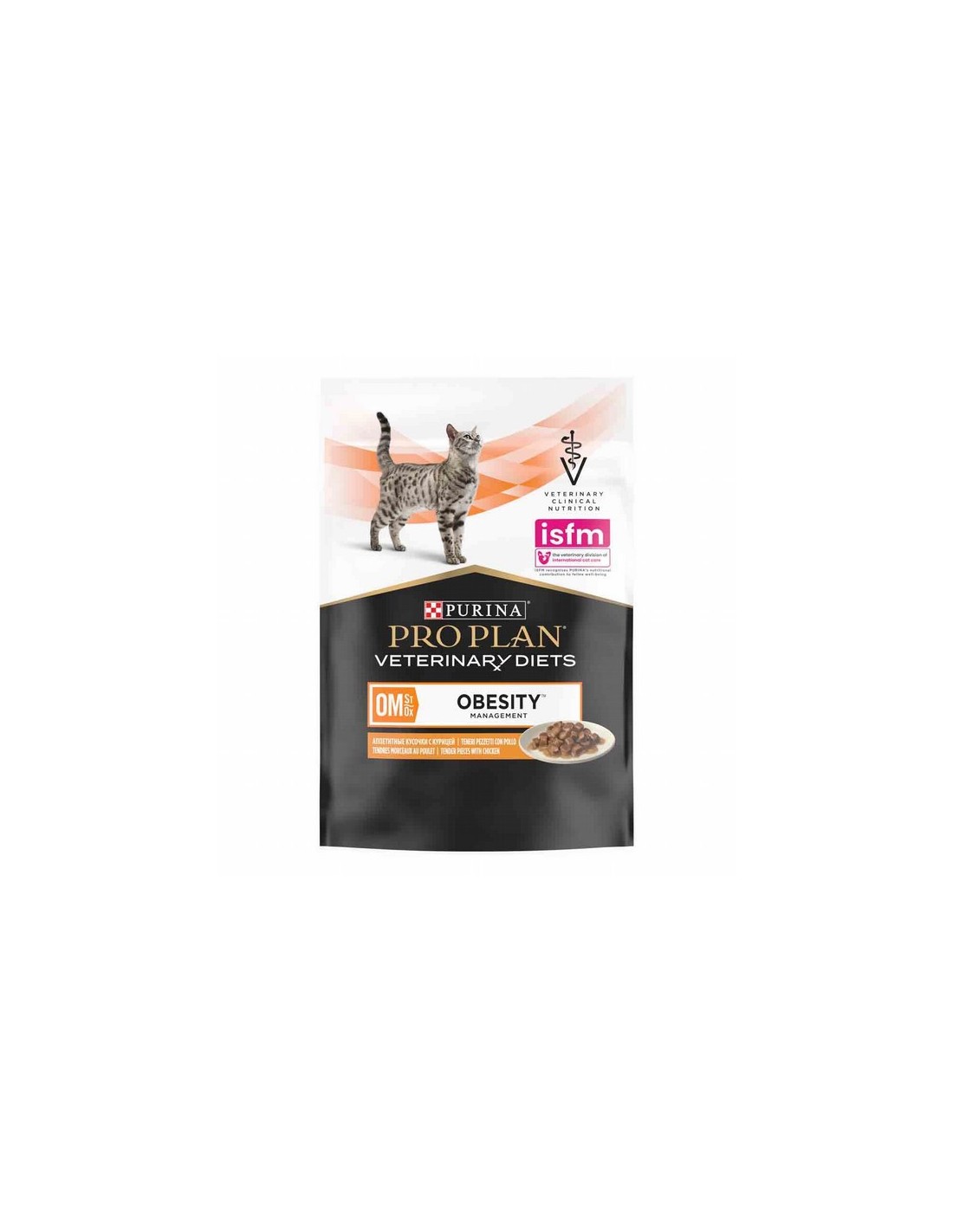 Purina Veterinary Diet Feline OM (Manejo de la Obesidad) contiene altos niveles de proteínas para estimular el metabolismo y promover la pérdida de grasa mientras se mantiene la masa muscular. También cuenta con bajos niveles de grasa y calorías para promover la pérdida de peso, y un nivel adecuado de fibra para ayudar a su gato a sentirse satisfecho después de comer.