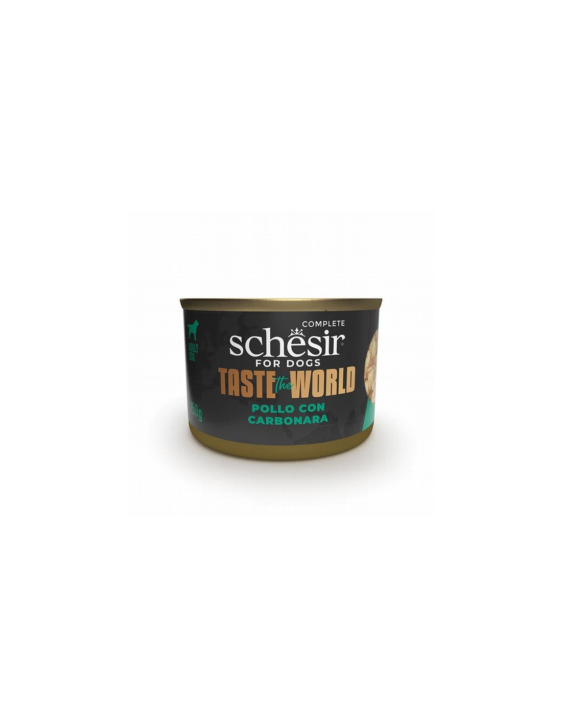 Los filetes de pollo se combinan con pasta y sabrosa carne de cerdo, además de guisantes, queso y huevos: una comida completa y equilibrada inspirada en el famoso plato de la deliciosa carbonara, que ofrece a su perro la calidad de los ingredientes junto con una apetitosa combinación de sabores.