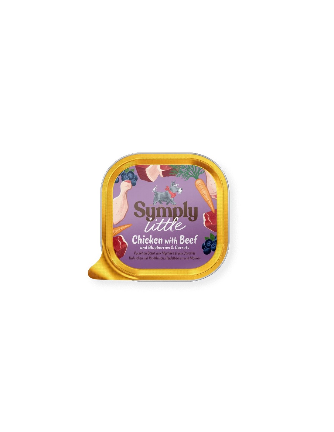 Symply Little con Pollo y Ternera Frescos es una comida deliciosamente equilibrada, perfecta como alimento único o como topping para combinar con pienso. Seguro que le encantará a tu pequeño amigo peludo.