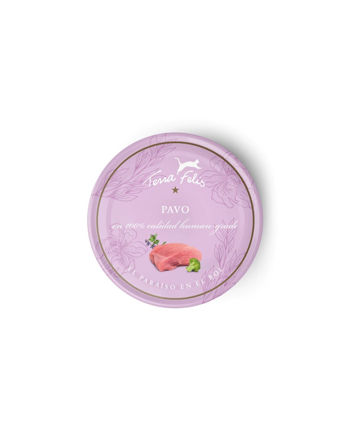 Terra Felis Lata húmeda de pavo es una receta de comida húmeda natural para gatos con ingredientes aptos para consumo humano.