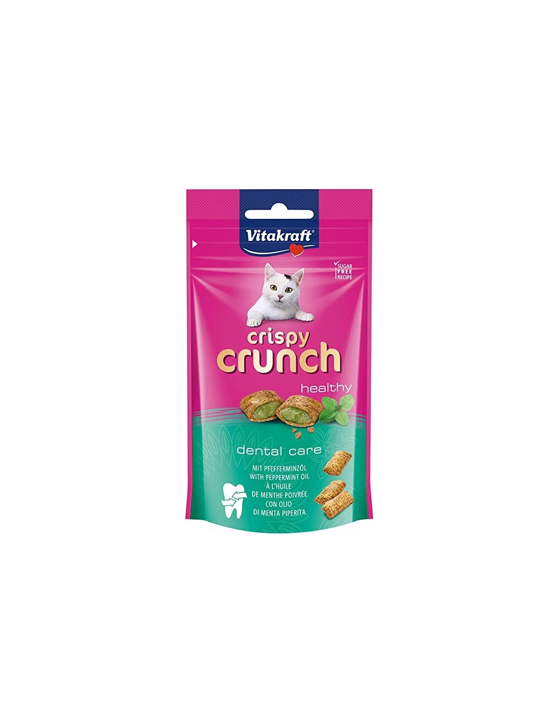 Relleno cremoso delicioso en la capa crujiente irresistible: Su gato le gusta Crispy Crunch! Es particularmente conveniente que el Knusperkissen a prevenir el sarro y así apoyar activamente los tigres de instalaciones de cuidado dental mientras picoteo. Aceite de menta se incluye también reduce el olor de la boca del gato.