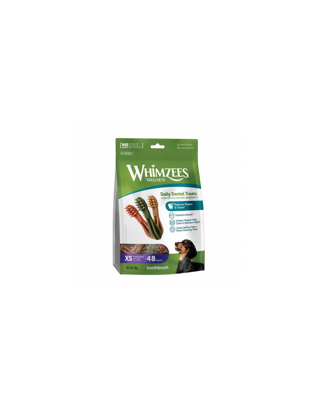 Premios en forma de cepillo, hipoalergénicos, naturales y sin gluten para perros de razas pequeñas. Tu perro se mantendrá entretenido masticando este snack de larga duración mientras que cuida su higiene dental eliminando el sarro y el mal aliento.