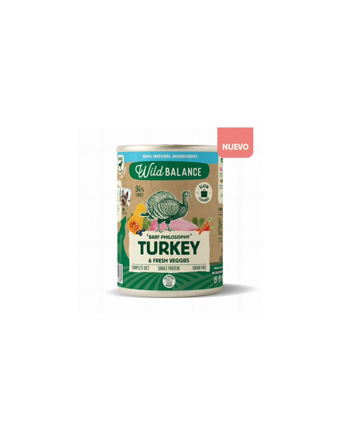 En Wild Balance somos conscientes de la importancia que tiene la alimentación para nuestros perros, por ello todas nuestras latas contienen ingredientes de calidad, con un alto porcentaje de carne, pescado y verduras (60% ternera, 30% salmón, 10% zanahoria y espinacas), cocinados a fuego lento y con mucho amor.