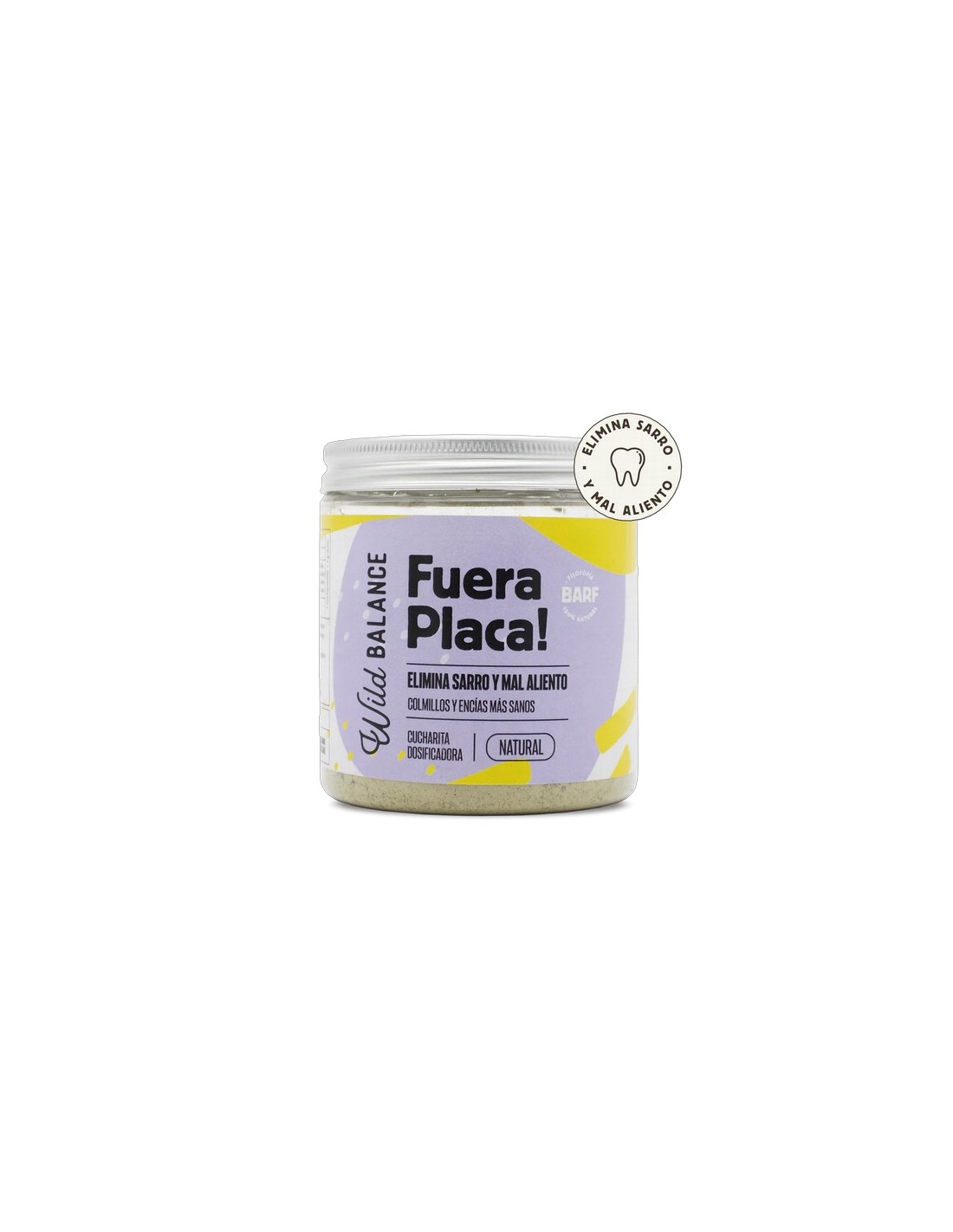 FUERA PLACA! es un suplemento que ayuda a eliminar el sarro y el mal aliento de tu peludo, es por ello que este producto para la higiene bucal es imprescindible para evitar que tu perro o gato presente otros problemas en el futuro. Este mix está elaborado a base de algas marinas y otros ingredientes naturales, por lo tanto, es un producto 100% natural, sin conservantes ni aditivos. Por esto mismo, ayuda a que tu mascota mantenga una salud bucal completa. Tanto de dientes, como de encías.